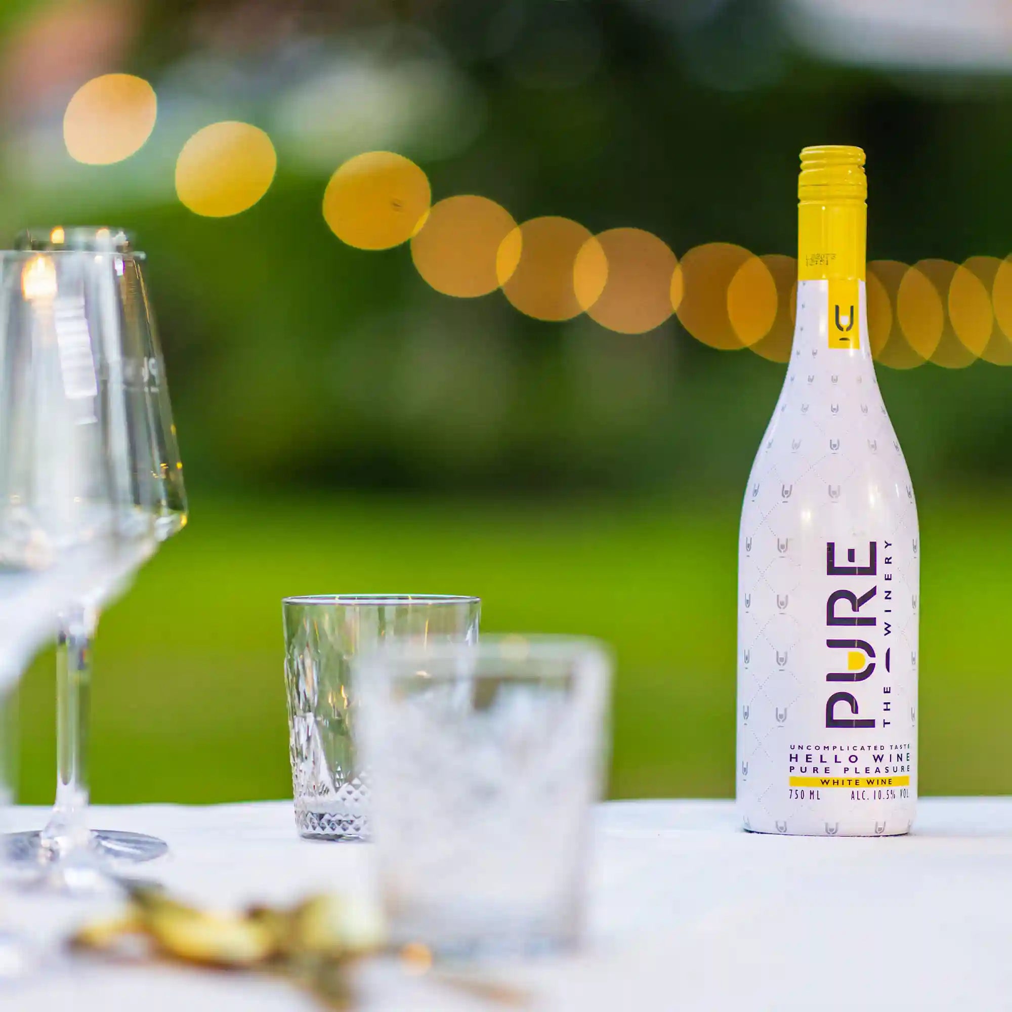 * At least 30% fewer calories compared to wines containing ≥ 12% alcohol, carbohydrates and sugar. The wines of Pure The Winery contain 10.5% alcohol, 0 grams of carbohydrates and 0 grams of sugar.
